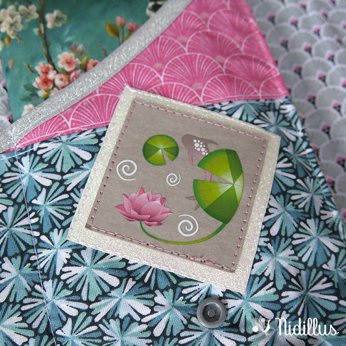 2 ème version : La pochette à livre avec un rabat orné d’un passepoil et d’un fermoir magnétique. Cette fois, un autre tissu est mélangé à la planche pour vous laisser plus de liberté dans vos choix de couleurs.