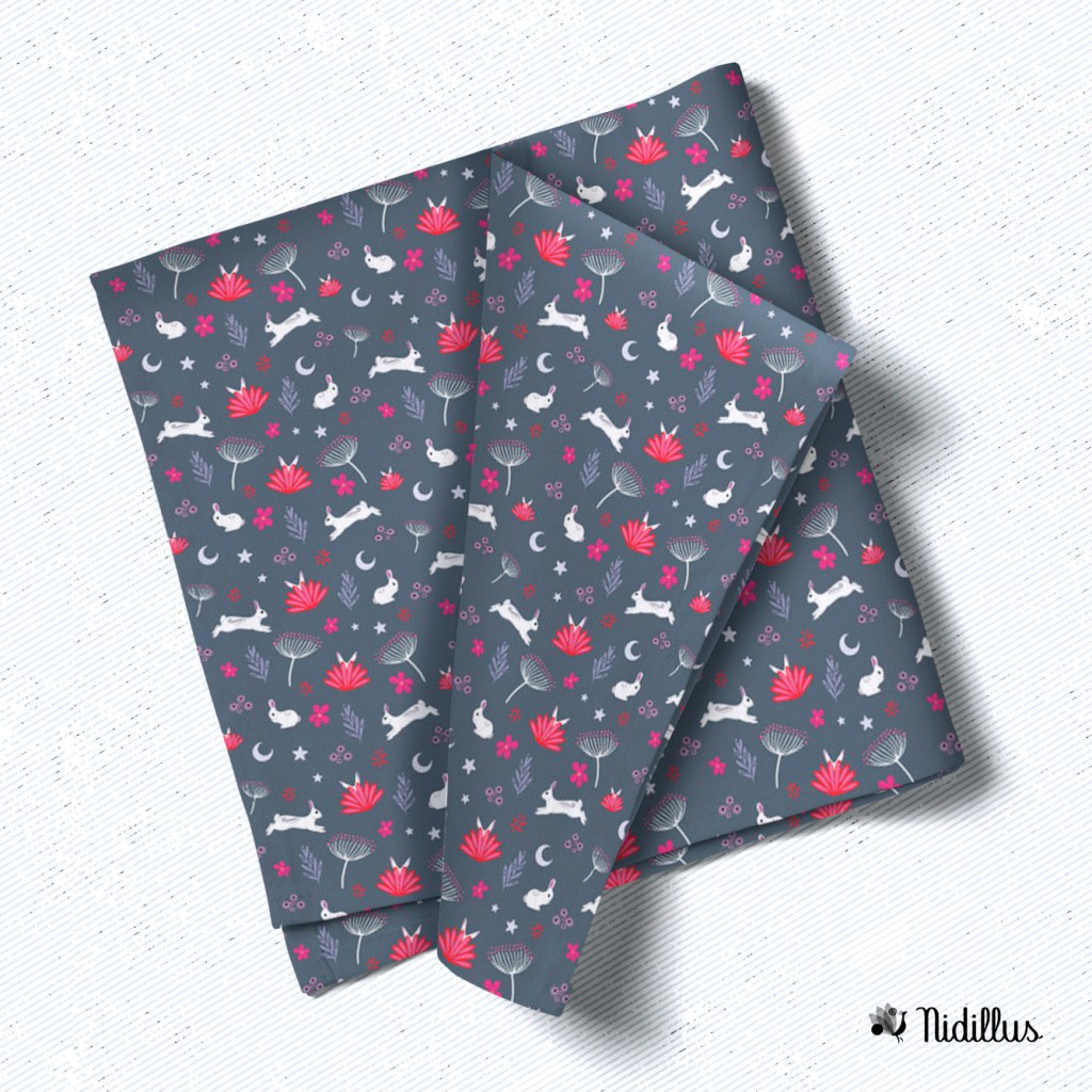 C’est exactement ce que j’ai voulu crĂ©er avec le tissu Ă motifs « Lapin et bohĂšme« . Un tissu qui se contemple autant qu’il se coud. Un tissu oĂč il faut chercher, et oĂč la rĂ©compense est un petit sourire.