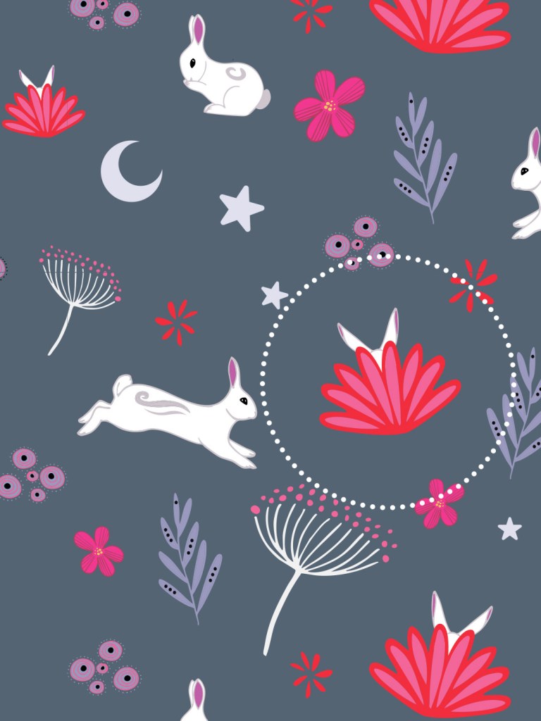 CrĂ©er un motif rĂ©pĂ©tĂ©, ce n’est pas juste choisir un joli dessin et le dupliquer. C’est construire un monde qui se dĂ©ploie sur le tissu, qui respire, qui raconte. Moi qui me ressource beaucoup dans la nature, j’ai eu envie d’y mettre un souvenir impĂ©rissable d’un champ de lapins dĂ©couvert un beau matin. Et bien sĂ»r, je me suis inspirĂ©e de mon lapin nain.