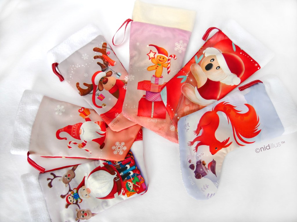 Pour l’occasion et exceptionnellement, j’ai confectionné des chaussettes de Noël et des petits sachets avec mes coupons illustrés. Ils peuvent servir d’emballage pour y mettre des cadeaux comme des bijoux ou des chocolats.