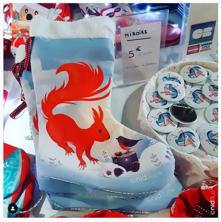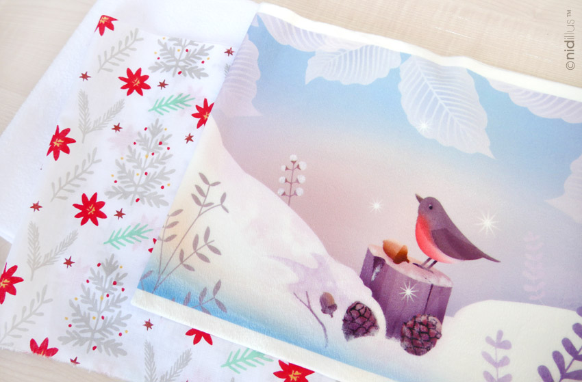 Demain, je fais mon premier marché de Noël WE du 11 et 12 pour ma part. C’est un peu particulier car les visiteurs ne sont pas les même que dans un marché aux tissus. Il y aura beaucoup moins de gens intéressés par la couture. Clairement, je ne sais pas trop ce que ça va donner mais j’avais envie de participer à ce genre d’évènement. Noël c’est aussi le moment de rêver, alors j’essaie de faire rêver avec mes illustrations.